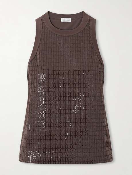 BRUNELLO CUCINELLI Sequin-embellished stretch-cotton jersey tank