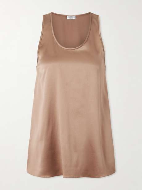 Brunello Cucinelli brings understated refinement to this top, where glamorous sheen meets minimalist design. It's cut from fluid silk-blend satin to drape over your figure and has a low scooped neckline. Pair it with tailored pants or a flowing skirt for a look that feels effortlessly polished.
