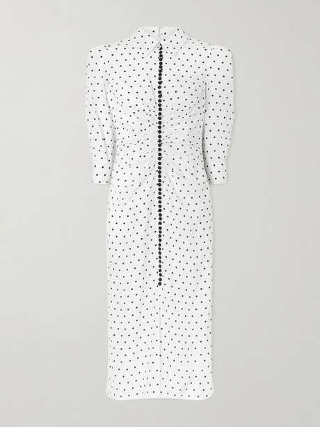 CAROLINA HERRERA Ruched polka-dot silk crepe de chine midi dress
