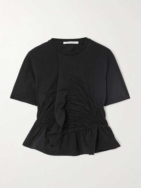In Cecilie Bahnsen's hands, even a simple T-shirt feels romantic. Cut from soft cotton-jersey, this version has a ruched bodice to create an elegant peplum hem. Style yours with slouchy denim and ballet flats.