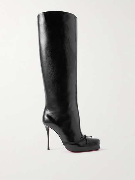 Christian Louboutin's 'Cassia Nodo' knee boots reinterpret ballet-inspired elegance with a bold, sculptural edge. Crafted from supple leather, they feature signature bow accents at the squared toes and rest on sleek 100mm stiletto heels.