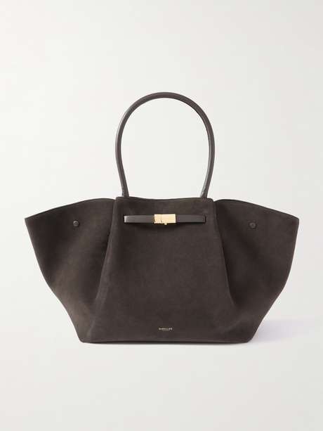 DeMellier scales up its signature 'New York' tote in soft 'Espresso' suede. Inspired by the label's passion for the city, the tote draws influence from the energy and architecture of its namesake. It's crafted from tactile suede with a belted front and polished gold-tone hardware. Inside, you'll find a zip and slip pocket for storing your essentials, as well as enough room to carry a laptop.