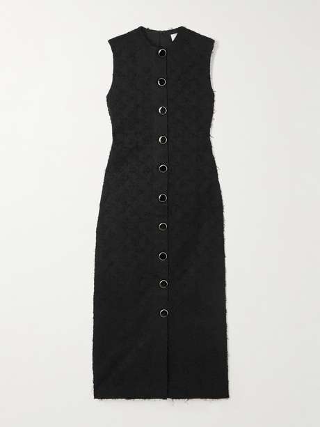 The quiet elegance underscoring DESTREE's 'Camille' midi dress is rooted in Parisian dress codes. It's cut from textural fil coupé organic cotton and detailed with glossy, gold-trimmed buttons. The brand likes it styled with understated flats.