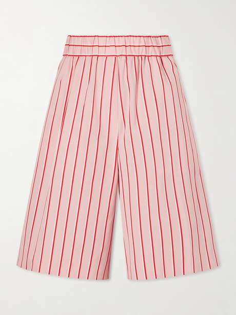 Dries Van Noten’s "Pomy Bis" shorts call for summer. Made from cotton, they’re printed with striking red stripes and cut to a knee-length silhouette. Style them with a halterneck top and boots.