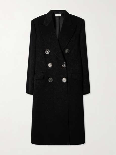 Dries Van Noten’s coat highlights the label’s talent for elevating classic tailoring through subtle texture and detail. Made from tonal matelassé, it has a double-breasted silhouette accented by ornate, mismatched buttons that lend the refined design a distinctive finish.