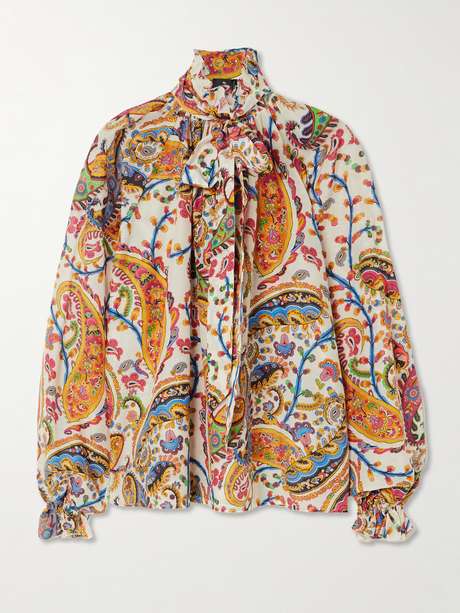 Etro's paisley swirls are signature to the brand, and gorgeous in their own right. This blouse is made from cotton and silk-blend with a charming pussy-bow neckline, adding to its vintage spirit.