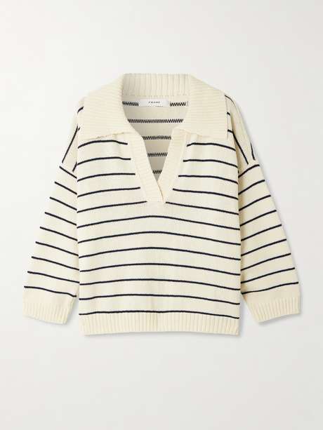 FRAME The Striped Easy cotton-blend polo sweater