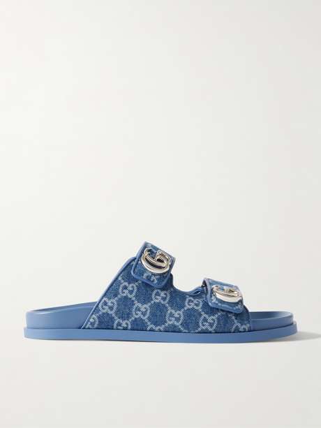 Gucci's sandals are instantly recognizable thanks to the iconic GG monogram. This pair has been made in Italy from denim and has double straps anchored with signature hardware. Molded footbeds create the perfect contoured fit.