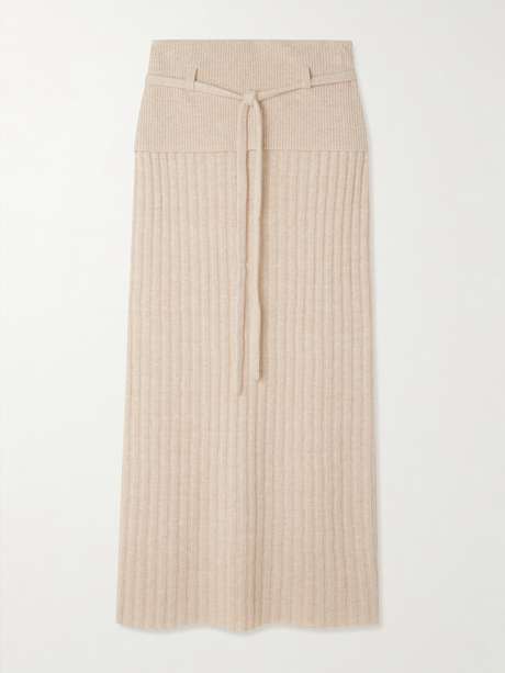 GUEST IN RESIDENCE Lia layered ribbed cashmere and linen-blend midi skirt