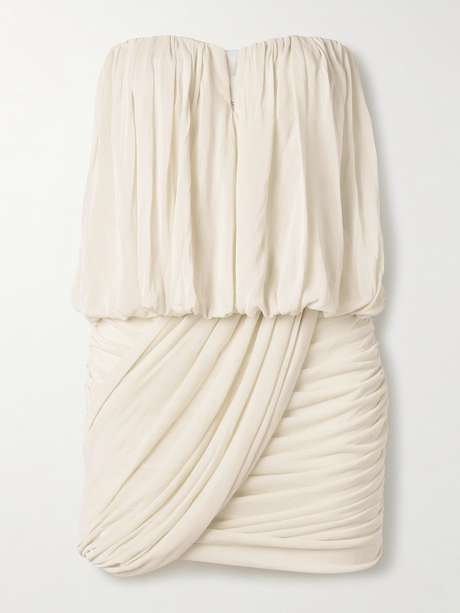 Isabel Marant's Fall '25 collection features a variety of beautifully draped dresses, including this 'Adelita' style. Cut from stretch-jersey, it's gathered throughout for added texture and volume and has a strapless neckline. Internal gumming ensures it stays put all day.