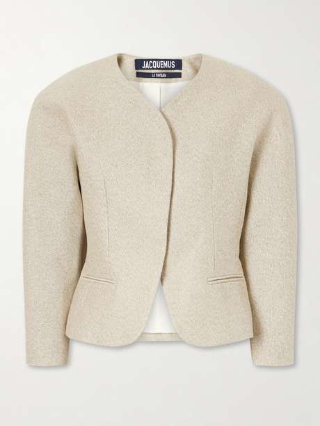 Jacquemus reimagines tailoring through playful proportion and sculptural lines. 'La Petite Veste Ovalo' is crafted from a cotton and linen-blend in a compact, structured silhouette that feels sharp yet slightly unexpected.