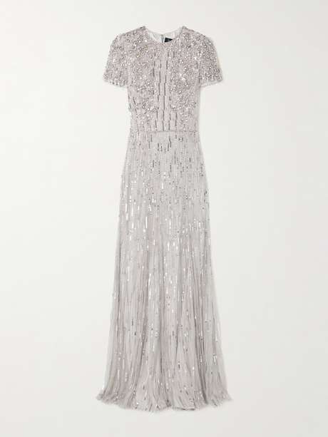 There's good reason so many incredible women turn to Jenny Packham when dressing for life's biggest moments. This 'Eliza' gown is cut from airy tulle, saturated with glinting bead and sequin embellishments that catch the light at all angles. The lightly gathered skirt sways beautifully as you move.