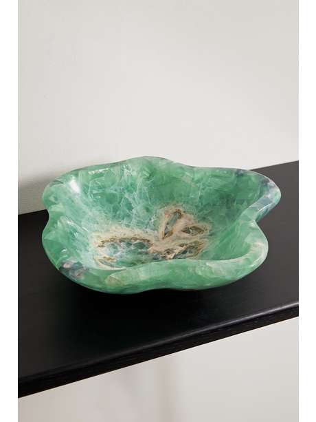 JIA JIA's bowl is made from fluorite - the naturally occurring colors and imperfections make it truly one-of-a-kind. It's polished along the edges to give it a cool, fanned out shape. The size is perfect for storing your most used jewelry.