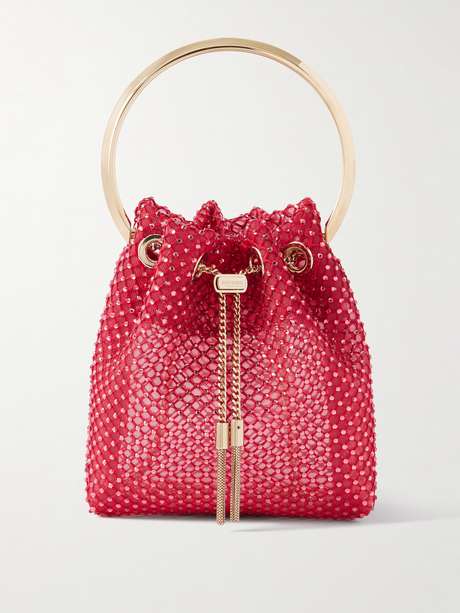 Named after a 'Bon Bon', Jimmy Choo's bucket bag is such a gorgeous way to finish off an evening outfit. It's made from mesh that's saturated with sparkling crystals and accented with a gold-tone drawstring chain and circular top handle. There's space inside for your keys, a card and lipstick.