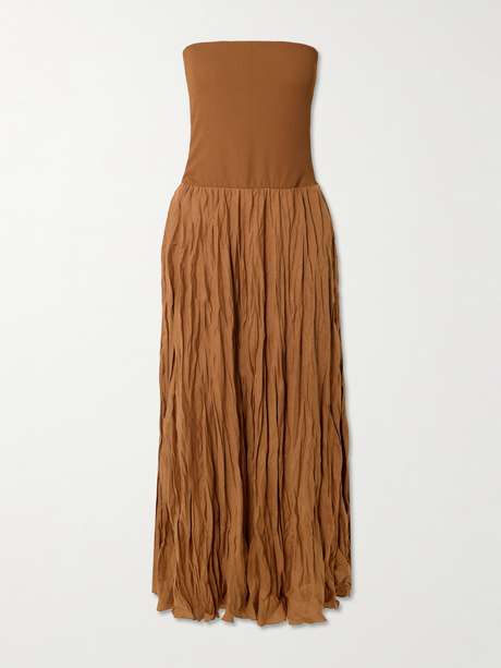 Johanna Ortiz' 'Empowerment Movement' skirt can also be worn as a dress, so it'll offer endless styling opportunities on your next vacation. Made in Colombia from crinkled linen-blend, it has a wide ribbed-knit waistband and falls to a floaty midi hem.
