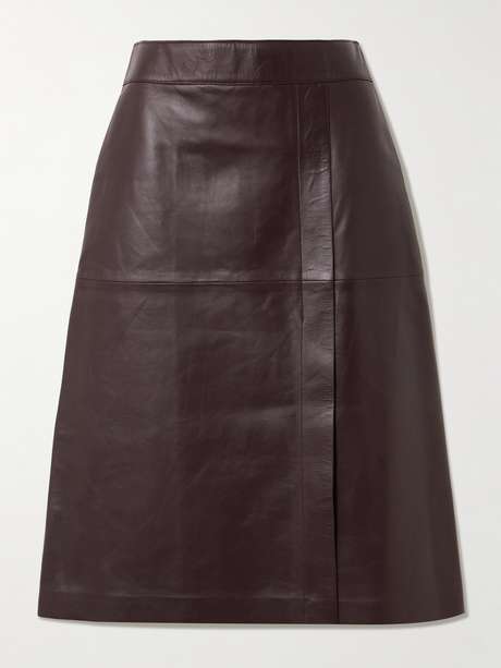 Joseph's 'Sevres' skirt is paneled from butter-soft leather in a rich plum shade. It has an A-line shape that falls to knee length. Wear yours with ballet flats or elevated mules.