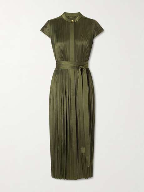 Joseph elevates eveningwear with fluid fabrics and sculptural details. The ‘Phare’ dress is crafted from lustrous plissé satin in a relaxed fit, featuring shaped sculpted short sleeves and a stand collar adorned with retro-inspired buttons. Use the wide tie belt to cinch the waist and balance the soft volume for a flattering silhouette.