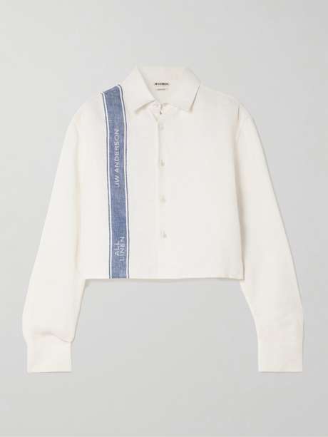 JW Anderson's shirt is jacquard-woven with a tea towel-inspired stripe along the bodice. It's made from breathable linen and cut for a slightly loose, cropped fit.