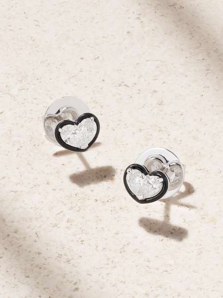 KAMYEN evokes romance with these 'Heartbeats' earrings. Cast from 18-karat white gold, they're each encrusted with a pair of sparkling pear-cut diamonds framed with glossy black enamel. Style yours with the matching ring in our edit.