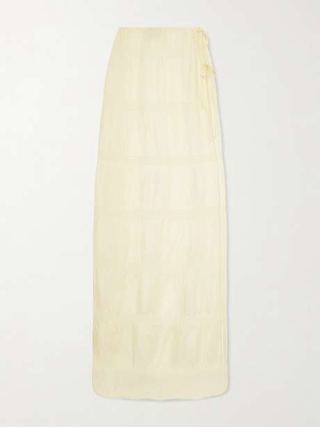 Kiki de Montparnasse's skirt is ideal for aperitifs or pool parties on your upcoming vacation. Made from fluid silk-organza, it's smocked to create striped bands and has satin ties at the side. Wear yours with slides and a matching bikini.