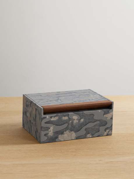 L'Objet's 'Fortuny' collection is a celebration of Venetian artistry. Crafted from walnut wood, this 'Isole' box is covered with faded camouflage-print twill and has a suede-lined interior that will keep your valuables free from scratches.