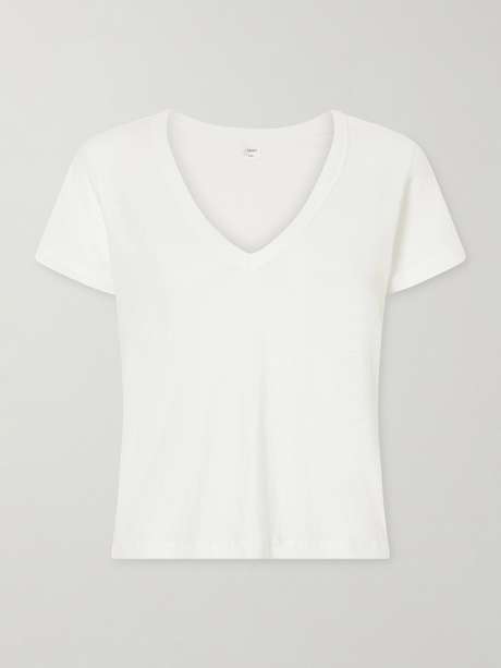 LESET's 'Laura' T-shirt is made in Los Angeles from lightweight cotton jersey, making it ideal for warmer days. Its V-neckline calls for a pendant necklace.