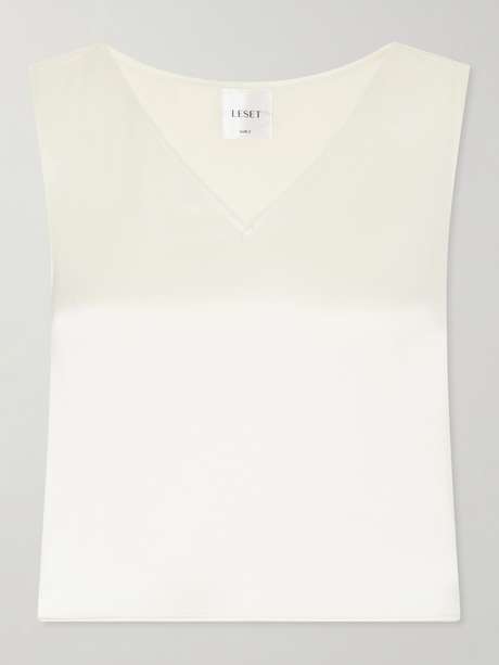 LESET's 'Barb' camisole is crafted from lustrous satin with a V-neckline, ideal for a necklace. It will look just as good with tailored pants as it will with jeans.