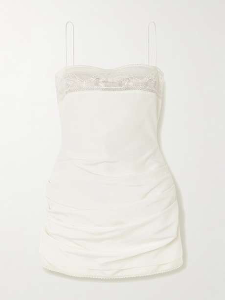 MAGDA BUTRYM Lace-trimmed gathered silk mini dress