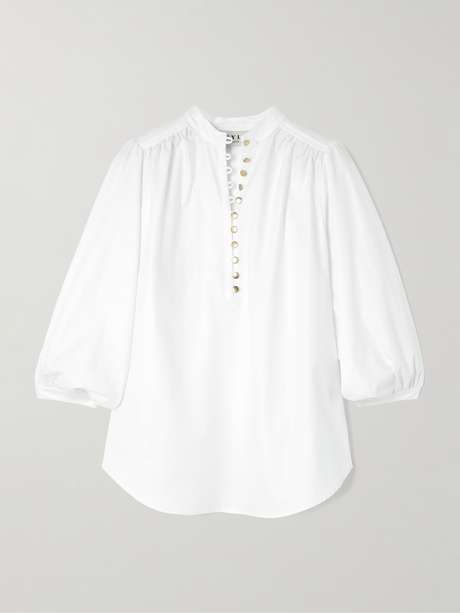 Maison Mayle often looks to vintage styles while designing its collections, so they have a timeless, classic feel. This 'Vivi' blouse has been made locally in New York City from herringbone cotton with pleats around the yoke that create a loose, flowing shape. Leave a few of the buttons undone for a deeper neckline.