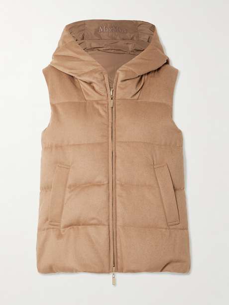 Max Mara's 'Delfy' gilet is reversible, so you can switch between the camel hair or shell side. Quilted and padded with insulating down, it has an enveloping hood and a two-way zip fastening to adjust the coverage.