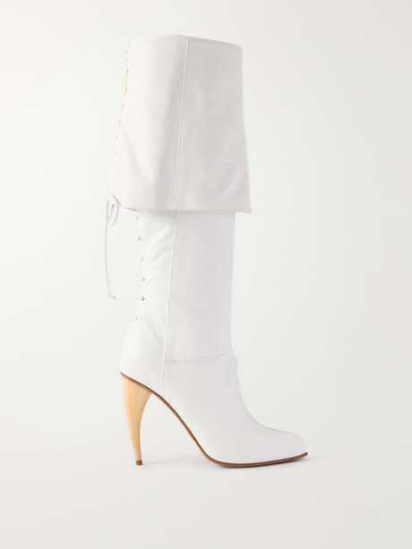 McQueen revisits the archives with this boot design. Crafted from smooth leather, they have a folded construction with lacing at the back and are set on 105mm wooden heels.