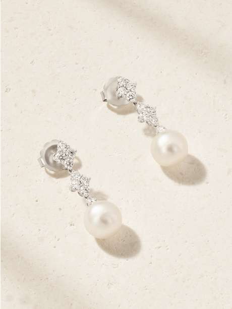 MIKIMOTO 18-karat white gold, pearl and diamond earrings