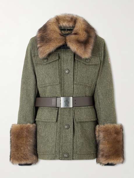 Stay chic and cozy on the mountains with Moncler Grenoble's 'Devez' jacket. Made from wool-gabardine, it's padded and filled with insulating down and trimmed with fluffy shearling along the collar and cuffs. Use the buckled leather belt to define your waist.