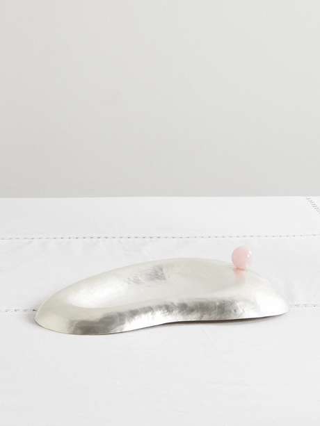Natalia Criado's plate has been handmade in Colombia, where the designer was born and raised. It's made from silver-plated brass in a curved 'Ear' shape and tipped with a glossy pink cabochon. The modern, distinctive design serves as a great conversation starter at dinner parties.