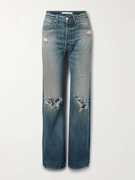 Meaning 'red' in Scottish Gaelic, RÙADH's collections are inspired by historic concepts of beauty and resilience. These 'Agnes' jeans are made from denim that's faded, whiskered and distressed for an authentic, love-worn feel. They have a mid-rise and classic straight legs.