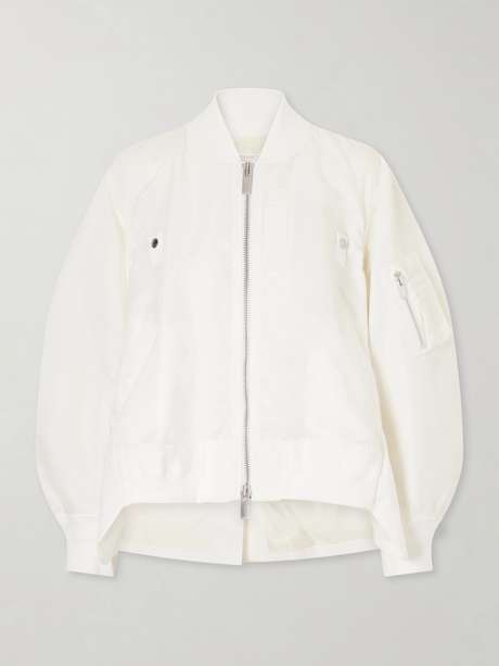 Sacai is known for layered, deconstructed silhouettes that fuse contrasting textures and fabrics. Made from twill, this bomber jacket features an unconventional shape with blazer-style inserts at the sides and a single vent at the back. Wear it as a final layer to add dimension and a distinctive, modern twist to your outfit.