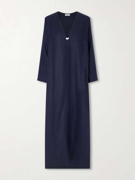 SARA CRISTINA Pearl-embellished linen kaftan