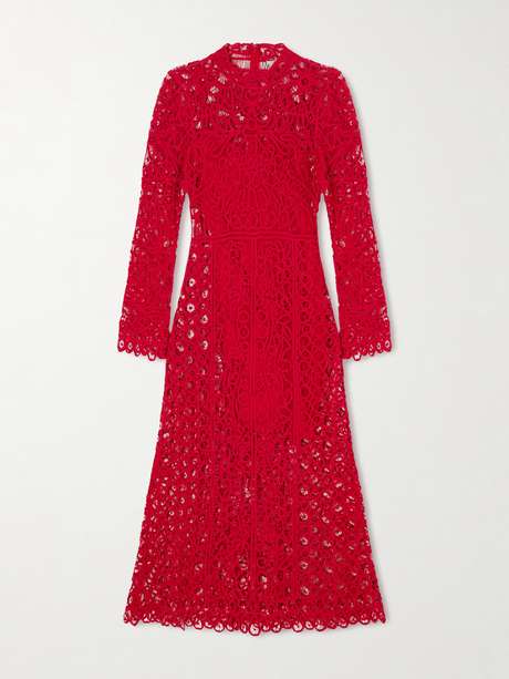 Sea's 'Adelina' dress is so striking. It's cut from guipure lace in a bold shade of red and has soft bell sleeves. Complement the high neckline with hoop earrings.