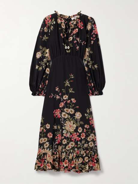 It's the little details that make Sea's 'Jolie' dress feel so romantic. Made from crepe de chine, it's printed with pretty blooms and has a gathered bodice and ruffled trims. The elongated ties at the neck can be knotted into a bow or left to drape loosely.