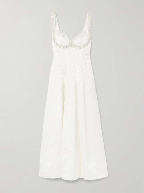 The sweetheart bodice and straps of Simkhai's 'Charlotte' midi dress sparkle with light-catching crystals and beads. It's made from lustrous satin-jacquard and has a softly pleated skirt. Wear yours with sandal heels.