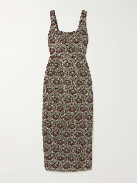 SIMKHAI Ravenna metallic jacquard midi dress