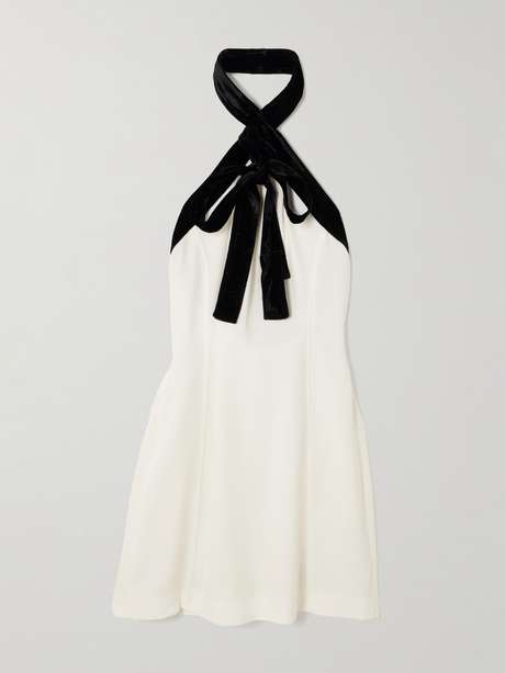 SIMKHAI Jolie bow-detailed velvet-trimmed crepe mini dress