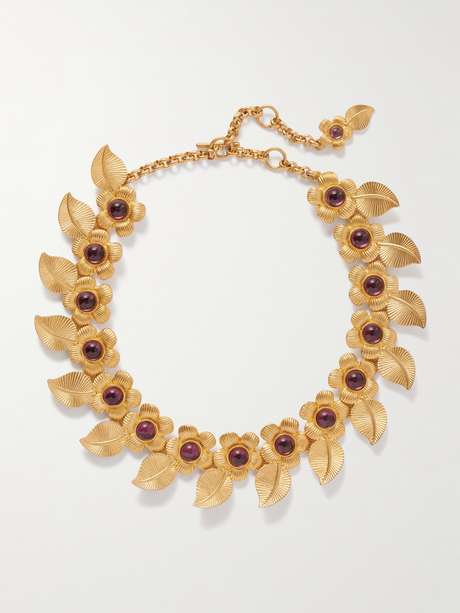 The links of Sonia Petroff's necklace fan out like petals or sun rays. Handcrafted in a Tuscan workshop, it's made from gold-plating with pink resin catching the light.