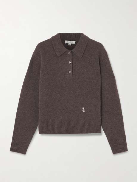 SPORTY & RICH SRC embroidered cashmere and wool-blend polo sweater