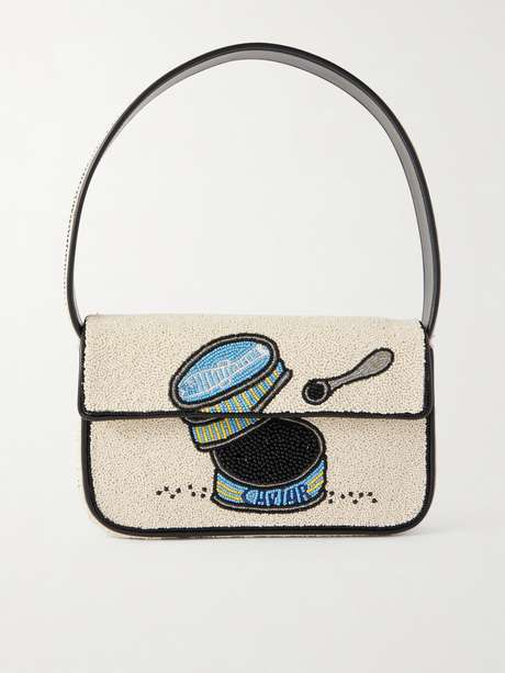 STAUD enjoys re-imagining its best-selling 'Tommy' shoulder bag in different finishes, so you'll always find a style to suit your personality. This one is crafted from satin and covered with sequins placed to resemble fine caviar. It's finished with supple synthetic material piping and a convenient magnetic-fastening slip pocket on the reverse. There's enough space inside for your phone, cardholder, lipstick and keys.