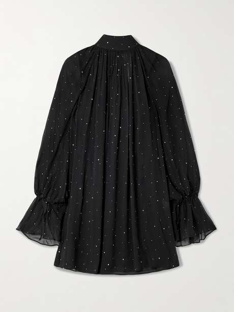STAUD's 'Roux' dress is dusted with crystals that'll sparkle prettily in low light or flash photography. Made from chiffon, it's softly gathered below the high neckline and has a floaty shape with tie-detailed cuffs. The accompanying slip tempers the sheerness.