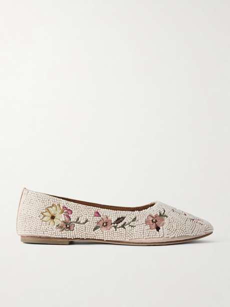 There's always a playfulness to STAUD's accessories – these 'Alba' ballet flats are artfully embroidered with iconic 'Do Not Disturb' lettering, inspired by hotels. They're made from smooth satin and stitched with glossy beads.