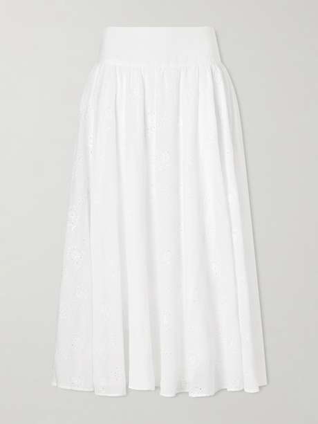 THIERRY COLSON Pamela pleated broderie anglaise cotton midi skirt