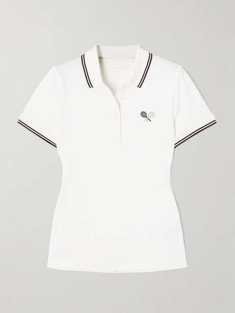 Tory Sport's polo shirt is made from breathable cotton-blend piqué and had striped trims and embroidered tennis rackets at the chest. Wear yours tucked into one of the brand's skirts when playing doubles.