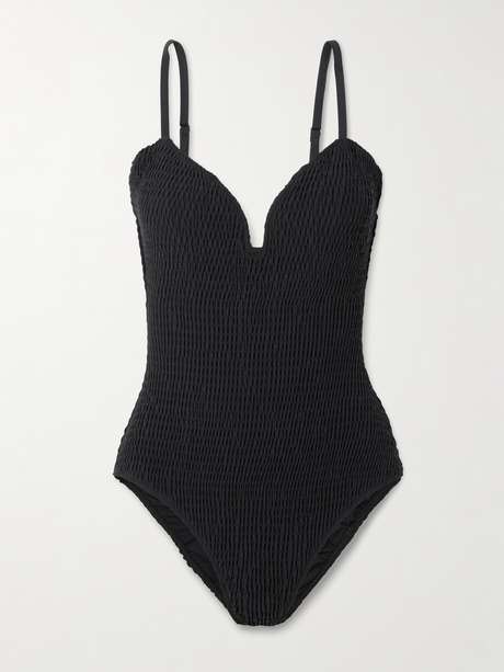 Ulla Johnson's 'Biarritz' swimsuit is smocked all over – a technique found across the designer's romantic ready-to-wear, too. It's made from Italian stretch-polyamide and plunges at the sweetheart neckline. Channel the French city its named after and style yours with retro shades.